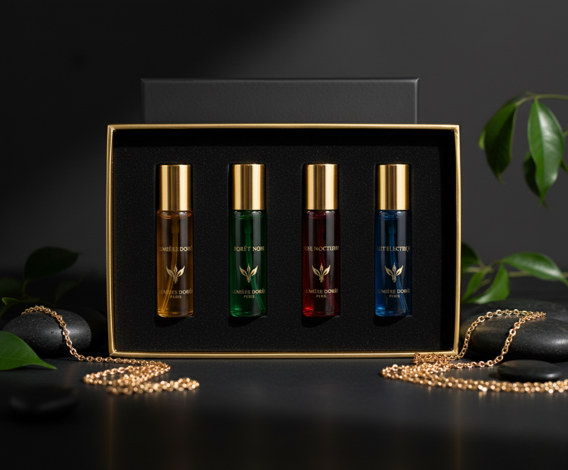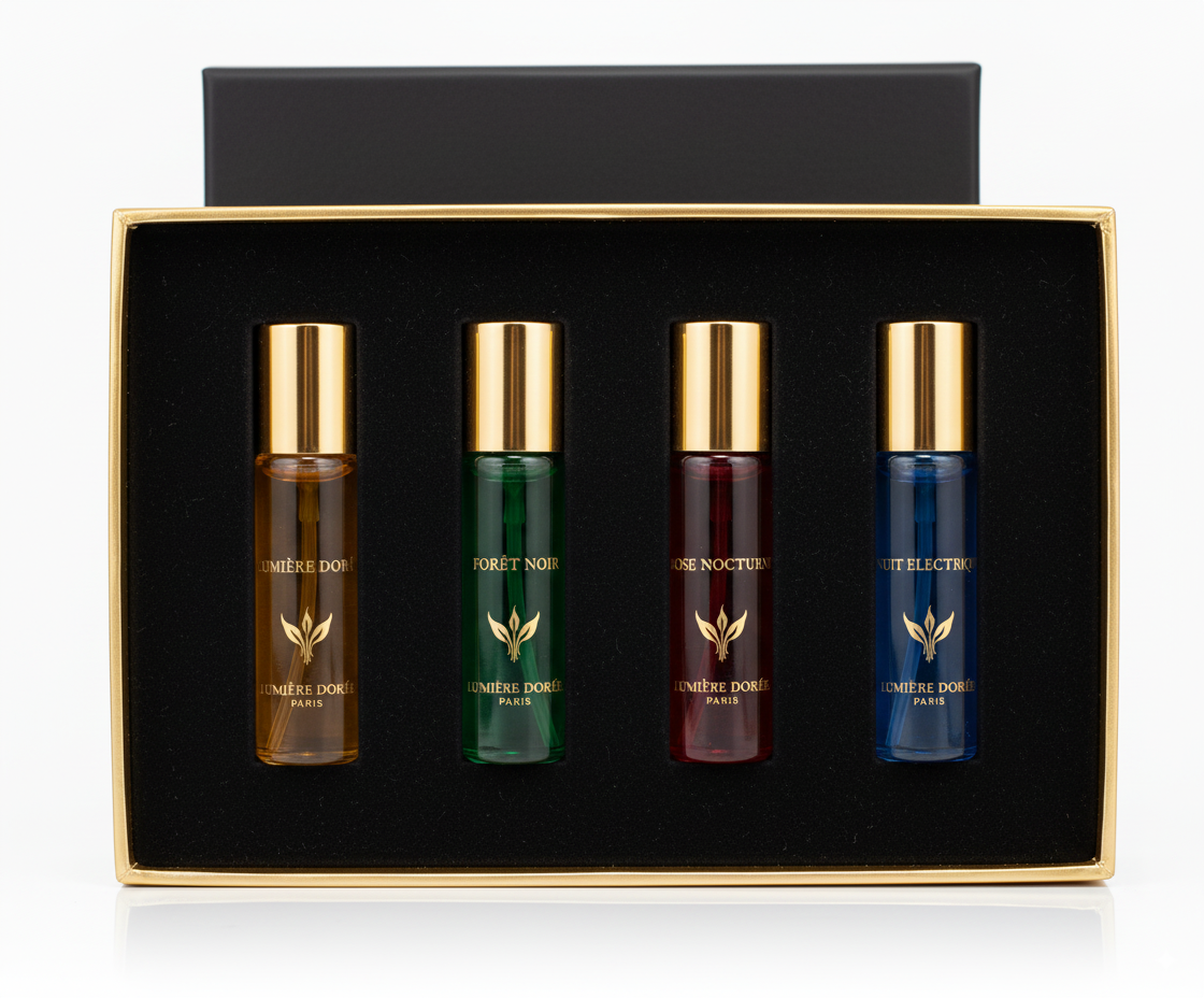 Designed as an intimate olfactory journey, the Discovery Set offers a first encounter with the soul of Maison Lumière Dorée. Each fragrance is crafted with noble ingredients and Parisian savoir-faire, making this set the perfect introduction to our world of elegance.